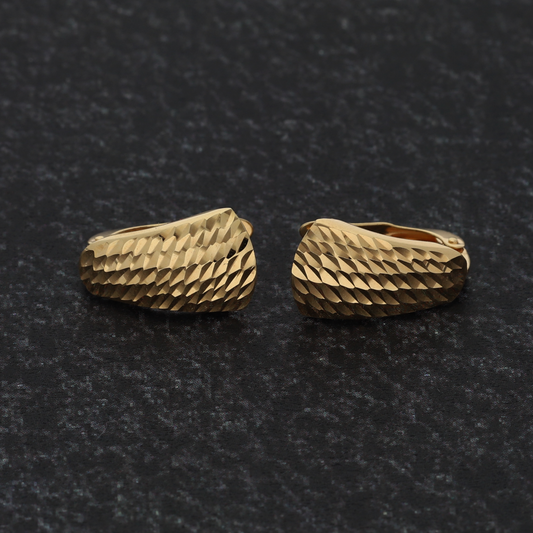 Gold Hammered Marquise Clip Earrings 18KT - FKJERN18K8933