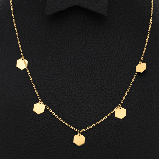 Gold Hexagon Shaped Necklace 18KT - FKJNKL18K9363