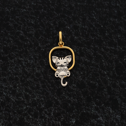 Gold Cute Cat Pendant 18KT - FKJPND18K9176