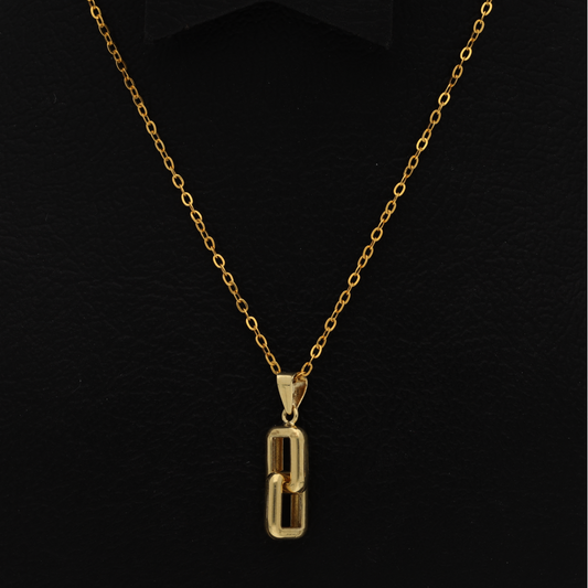 Gold Necklace (Chain with Double Square Link Pendant) 18KT - FKJNKL18K9183