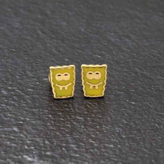 Gold Cartoon Spongebob Earrings 18KT - FKJERN18K9373