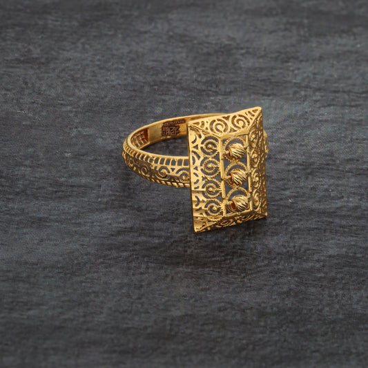 Gold Square Filigree Ring 21KT - FKJRN21KM9676