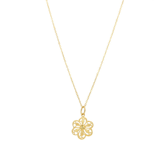 Gold Floral Filigree Necklace 21KT - FKJNKL21KM11341