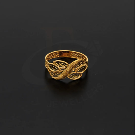 Gold Zirconia Leaf Ring 21KT - FKJRN21KM8411