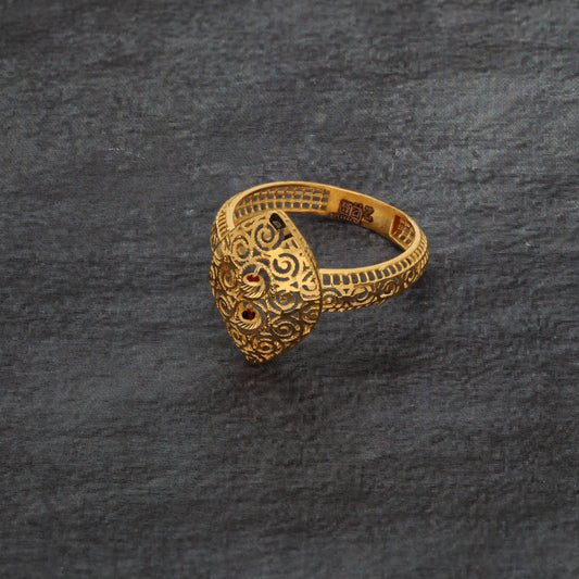 Gold Heart Flora Design Ring 21KT - FKJRN21KM8546