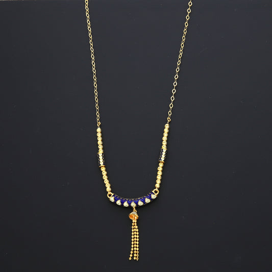 Gold Blue Bead Tassel Necklace 21KT - FKJNKL21KM10367