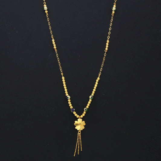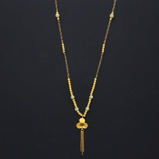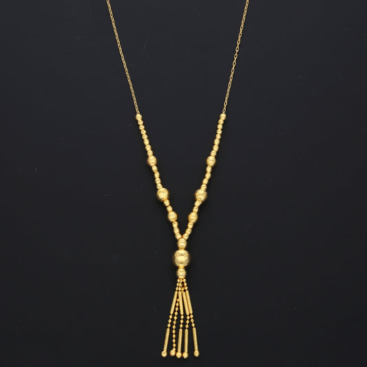 Gold Beaded Dangling Necklace 21KT - FKJNKL21KM10362