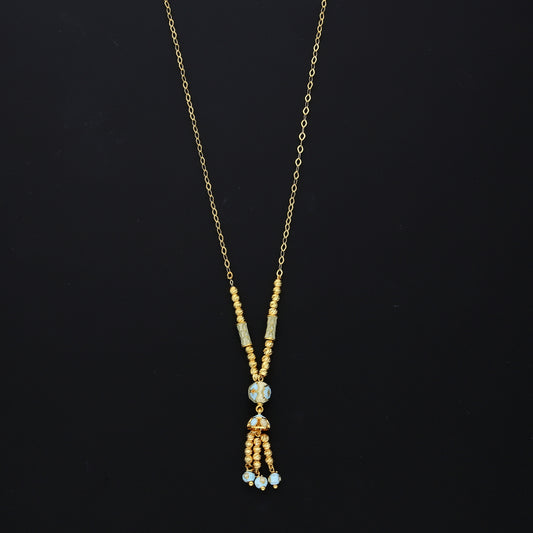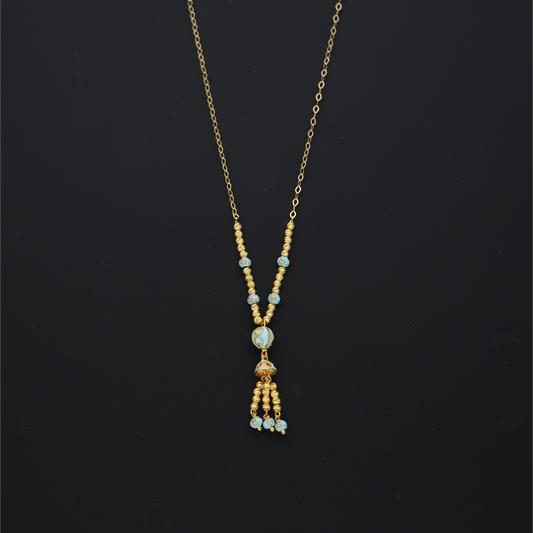 Gold Sky Blue Beaded Tassel Necklace 21KT - FKJNKL21KM10360