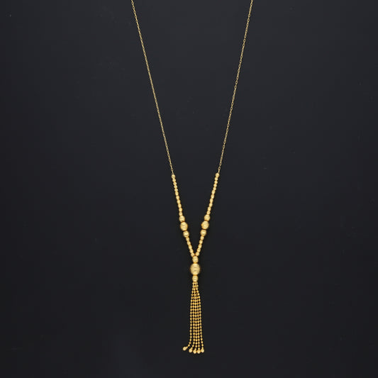 Gold Beaded Tassel Necklace 21KT - FKJNKL21KM10363
