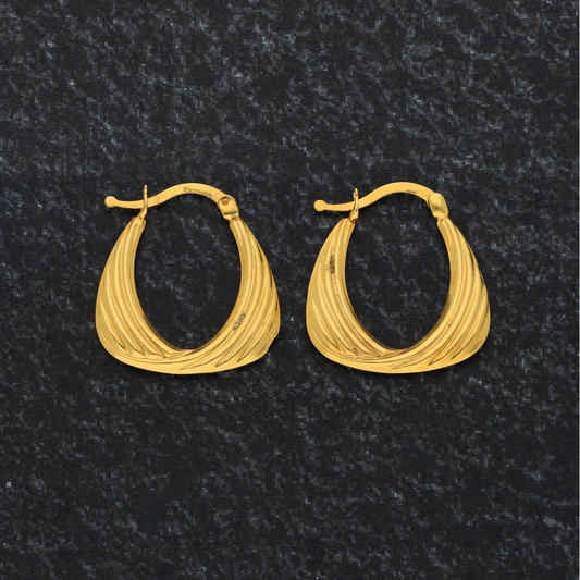 Gold Flat Oval Twist Creole Hoop Earrings 18KT - FKJERN18K9267