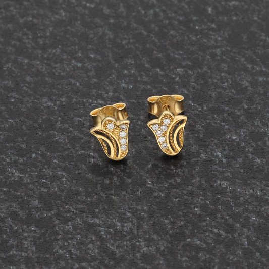 Gold Stud Round Shaped Earrings 18KT - FKJERN18K9282