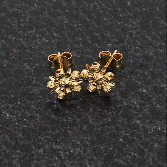 Gold Round Shaped Flower Earrings 18KT - FKJERN18K9277