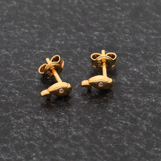 Gold Baby Whale Shaped Earrings 18KT - FKJERN18K9291