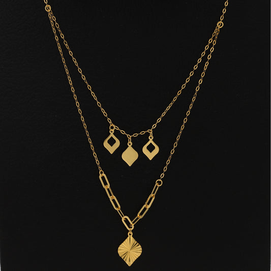 Gold Double Layered Necklace (Chain With Leaf Shaped Pendant) 21KT - FKJNKL21KM9891