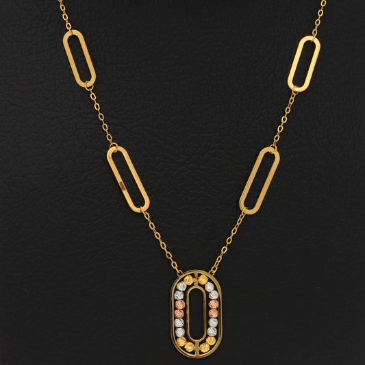 Gold Necklace (Chain With Beaded Oval Shaped Pendant) 21KT - FKJNKL21KM9856