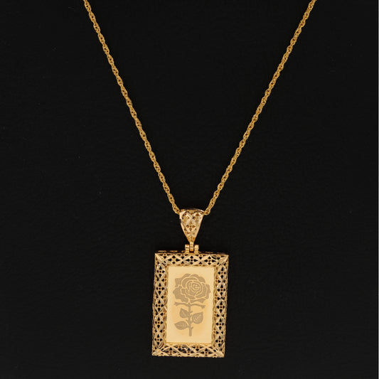Gold Necklace (Chain Rectangle Shaped Rose Frame Pendant) 21KT - FKJNKL21KM9617
