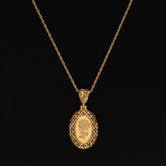 Gold Necklace (Chain Oval Shaped Rose Frame Pendant) 21KT - FKJNKL21KM9616