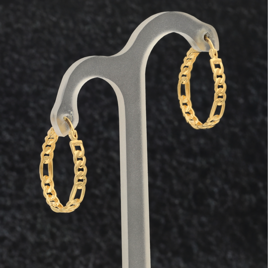 Gold Figaro Link Chain Round Shaped Earrings 18KT - FKJERN18K9296