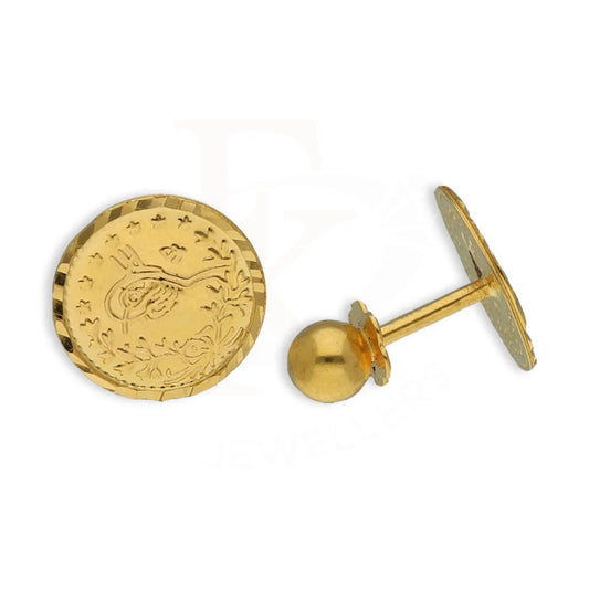 Gold Coin Shaped Stud Earrings 21KT - FKJERN21KM5173