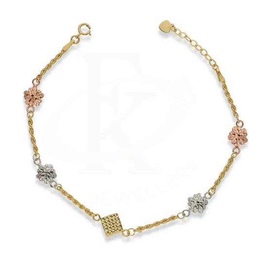 Tri Color Gold Beads and Flowers Bracelet 18KT - FKJBRL18K2977