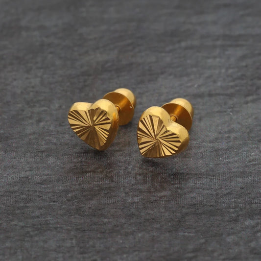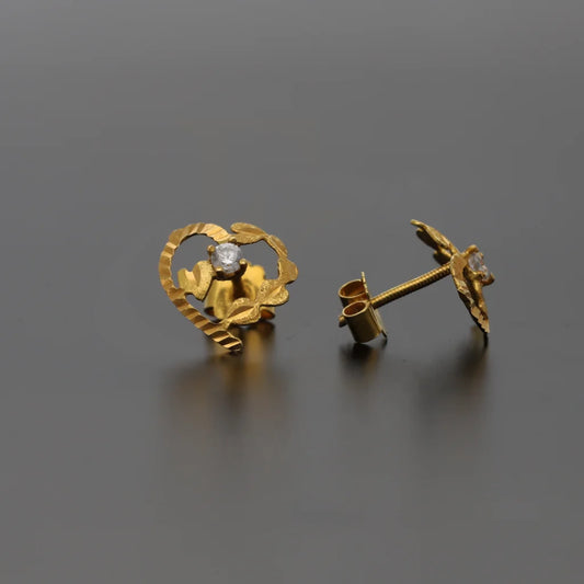 Gold Heart Shaped Stud Earrings 21KT - FKJERN21KM8623