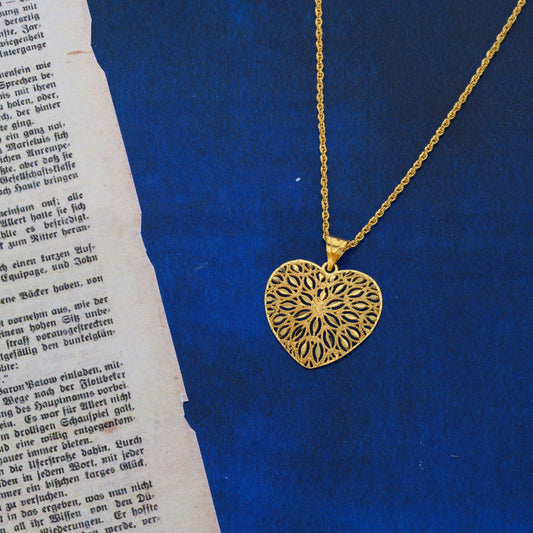 Gold Intricate Heart Shaped Pendant 21KT - FKJPND21KM9821