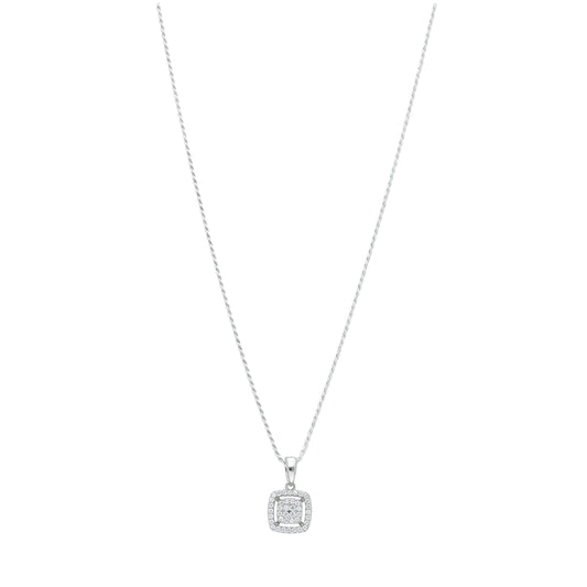 Sterling Silver 925 Square Sparkle Necklace (Chain with Pendant) - FKJNKLSL11121