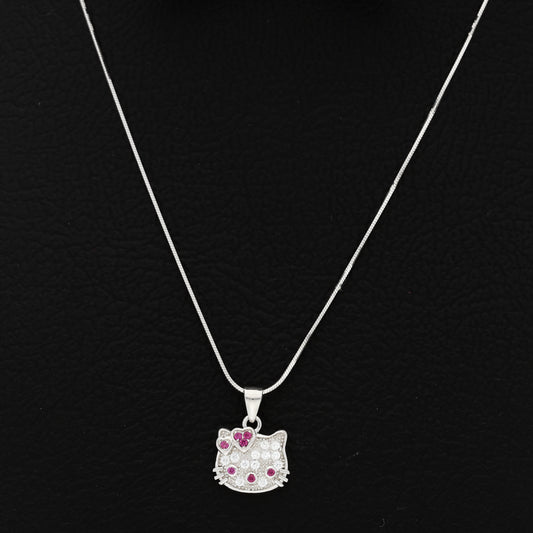 Sterling Silver 925 Hello Kitty Shaped Pendant Set (Necklace & Earrings) - FKJNKLSTSL9462
