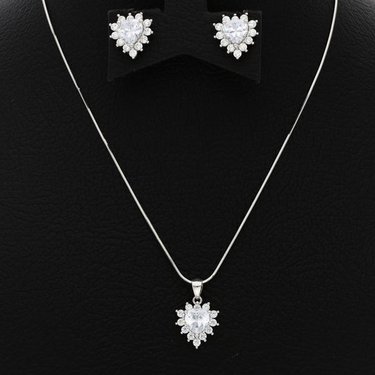 Sterling Silver 925 Heart Shaped Pendant Set (Necklace & Earrings) - FKJNKLSTSL9463