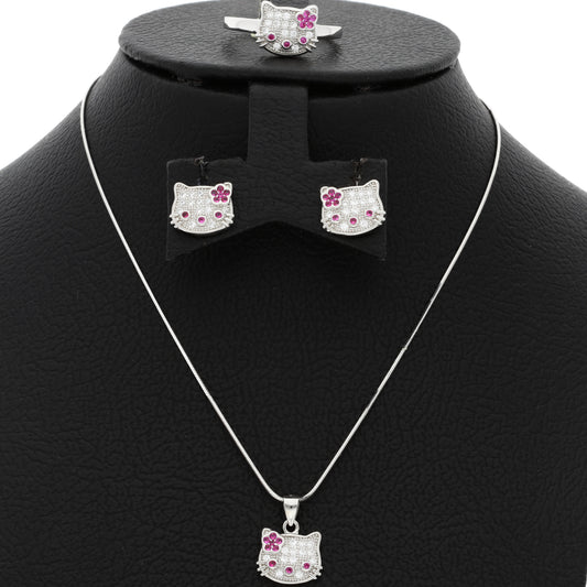 Sterling Silver 925 Hello Kitty Pendant Set (Necklace, Earrings and Ring) - FKJNKLSTSL9458