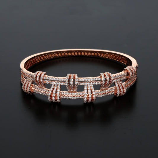 Sterling Silver 925 Double Layer Design Zirconia Rose Gold Plated Bangle - FKJBNGSL9482