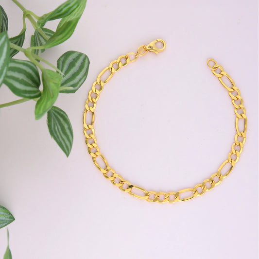 Gold Figaro Shaped Bracelet 21KT - FKJBRL21KM9549