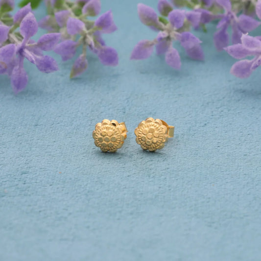 Gold Floral Studs Earrings 18KT - FKJERN18K8223