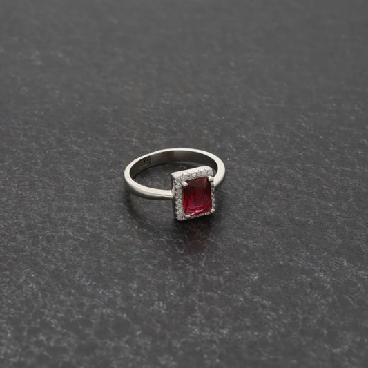 Sterling Silver 925 Faceted Red Topaz Women's Solitaire Ring - FKJRNSL8273
