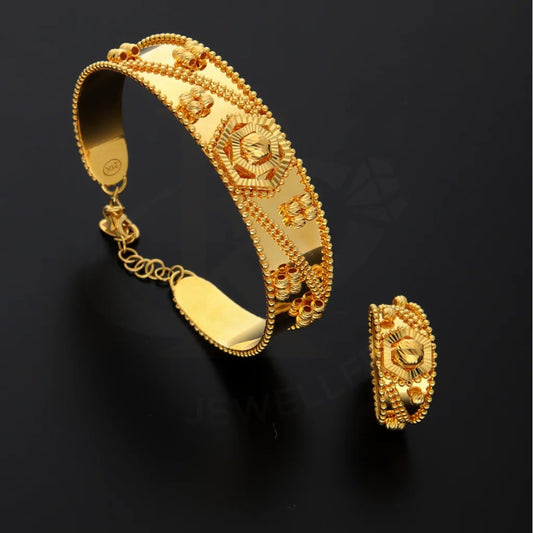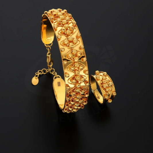 Gold Flower Stud Design Bangle Set (Bangle and Ring) 21KT - FKJSET21KM8688