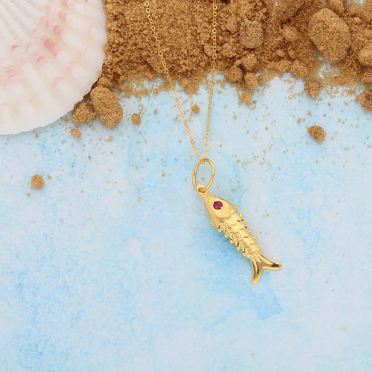 Gold Necklace (Chain With Red Eye Fish Pendant) 21KT - FKJNKL21KM7945