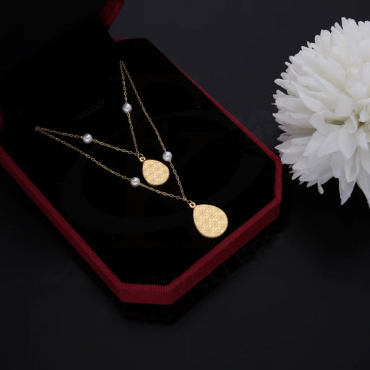 Gold Classy Old Pattern in Hanging Oval shaped Necklace 21KT - FKJNKL21KM8452