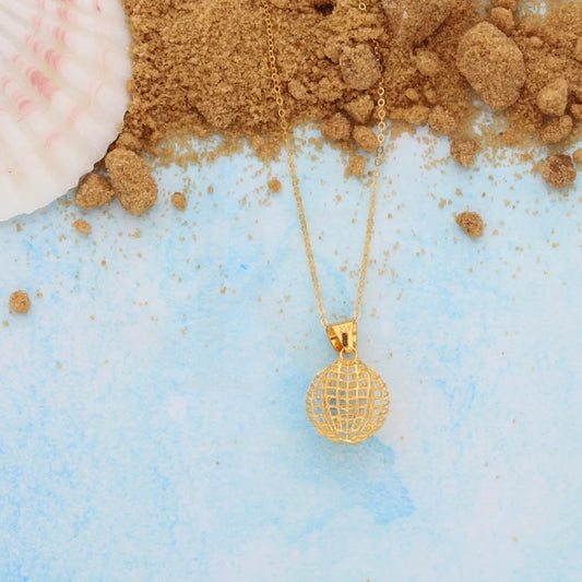 Gold Necklace (Chain With Ball Shaped Hallow Pendant) 21KT - FKJNKL21KM7940
