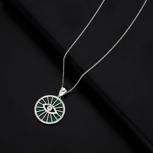Sterling Silver 925 Necklace Chain with Eye in Circle Pendant - FKJNKLSL9634