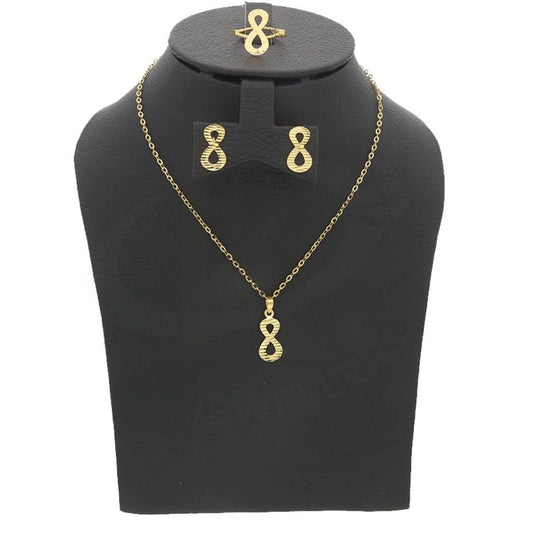 Gold Infinity Shaped Pendant Set (Necklace, Earrings and Ring) 18KT - FKJNKLST18K2169