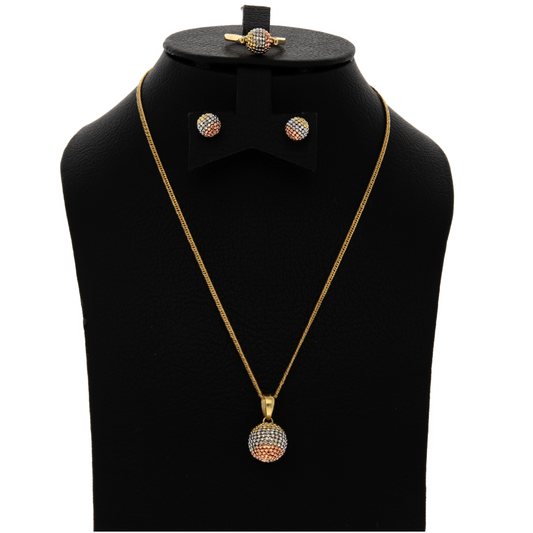 Gold Ball Pendant Set (Necklace and Earrings) 18KT - FKJNKLST1870