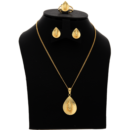 Gold Tear Drop Shaped Pendant Set (Necklace, Earrings and Ring) 18KT - FKJNKLST18K8920