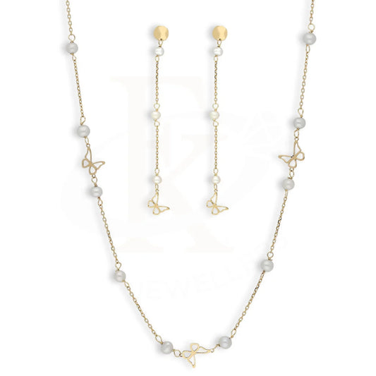 Gold Butterfly with Pearl Set (Necklace and Earrings) 18KT - FKJNKLST18K5529