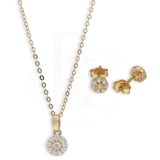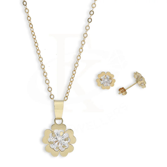 Gold Flower Shaped Solitaire Pendant Set (Necklace and Earrings) 18KT - FKJNKLST18K5553