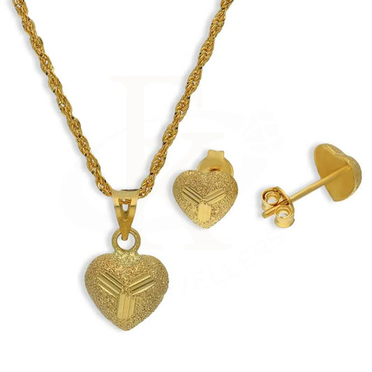 Gold Heart Pendant Set (Necklace and Earrings) 18KT - FKJNKLST1724