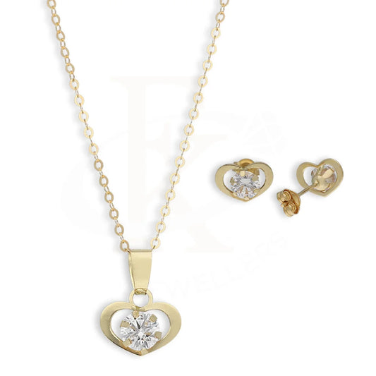 Gold Heart Shaped Solitaire Pendant Set (Necklace and Earrings) 18KT - FKJNKLST18K5583