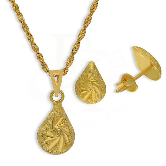 Gold Pear Shaped Pendant Set (Necklace and Earrings) 18KT - FKJNKLST18K2441