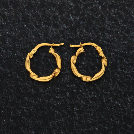 Gold Twist Hoop Round Earrings 18KT - FKJERN18K9265