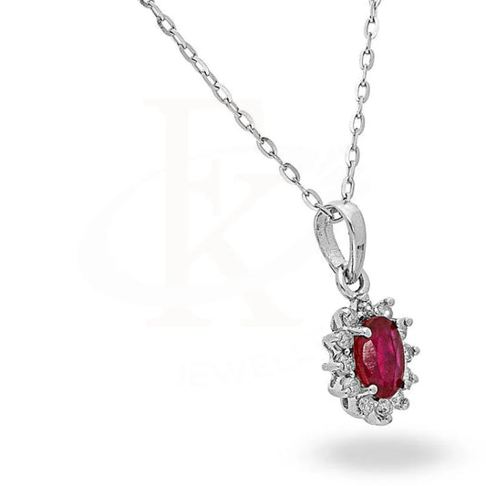 Diamond and Ruby Solitaire Necklace in Oval Shaped 18KT White Gold - FKJNKL18K2013