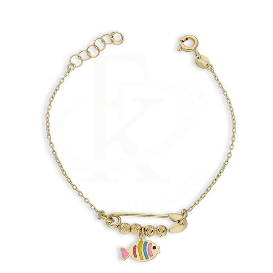 Gold Safety Pin With Fish Baby Bracelet 18KT - FKJBRL18K5335
